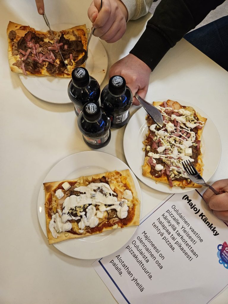 Illan ehdottomia vetonauloja olivat oululaiset perinneherkut, jotka herättivät vahvaa nostalgiaa niin nuorissa kuin aikuisissakin. Känkky, eli perinteinen oululainen majoneesipitsa, katosi pöydiltä hämmästyttävää vauhtia. Jaossa oli myös kompiaisia.